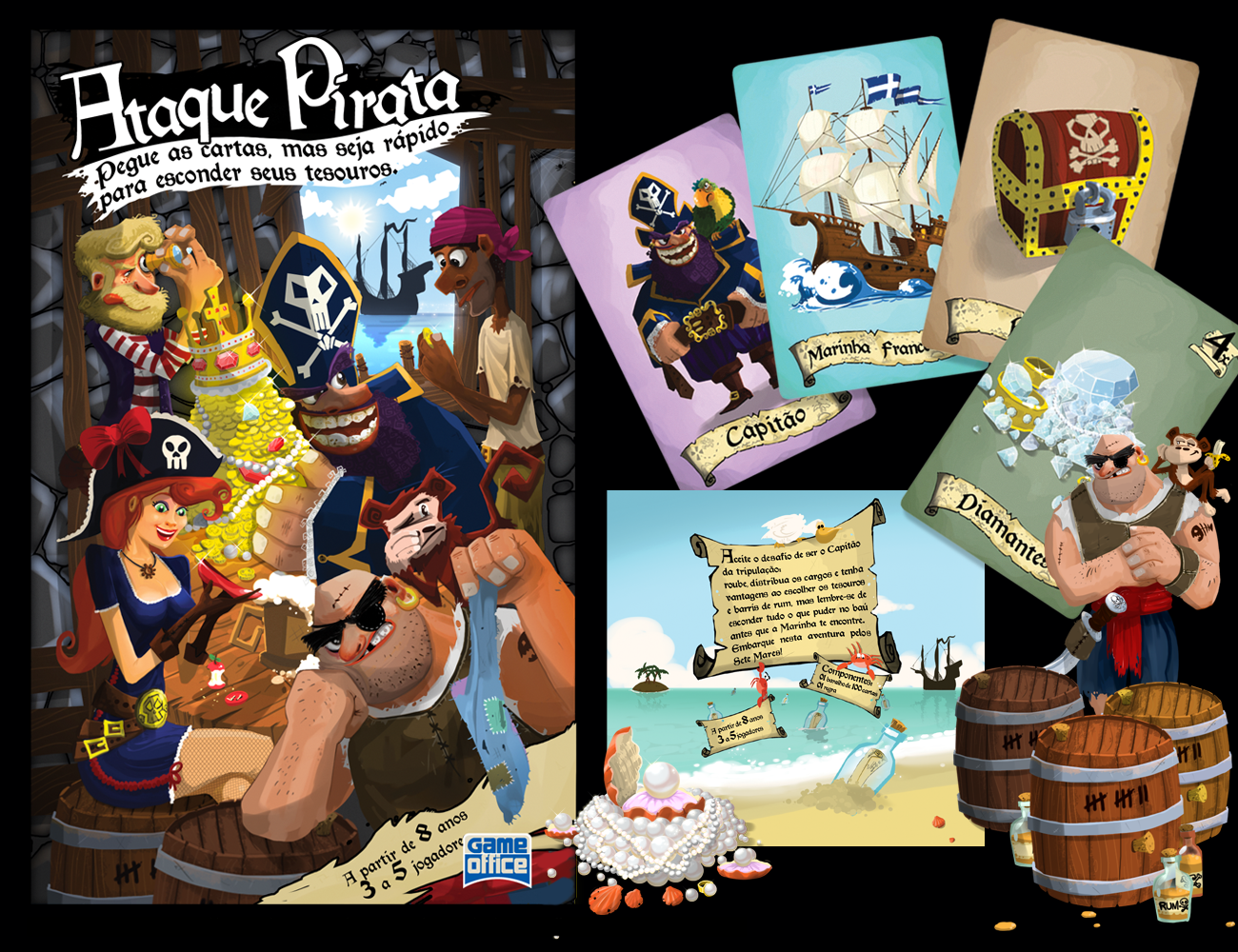 These are some of the main card games I’ve done. All artwork was created by me. In general, they are games for children, but always with a focus on fun. If you want to create a printed game, get in touch so we can talk!