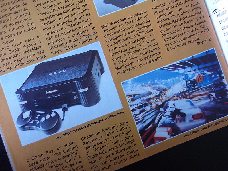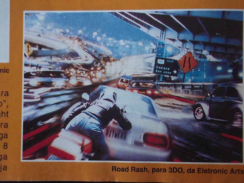 I’ve always been a video store fan and a regular consumer of video game magazines. I believed everything they said. In one of these I read about the launch of Panasonic’s 3DO, to this day I want to kill the magazine writer who put the photo montage of the game Road Rash as a real in- game im! (images below) To this day, even with the ultra realistic look of Forza, it is impossible for a console to make a game with the graphics in this image. Terrified, I immediately put all my energy into buying this video game, I sold what I had and what I didn’t have to buy the 3DO, and I still needed what would be the last time I would ask my mother for money. I managed to buy it!!! It was wonderful to be able to play Crash’n Burn, but with the amount I paid, I could have bought the Neo Geo. The 3DO was really captivating, it’s a shame that it was born in the middle of a battle of Titans and soon lost space.